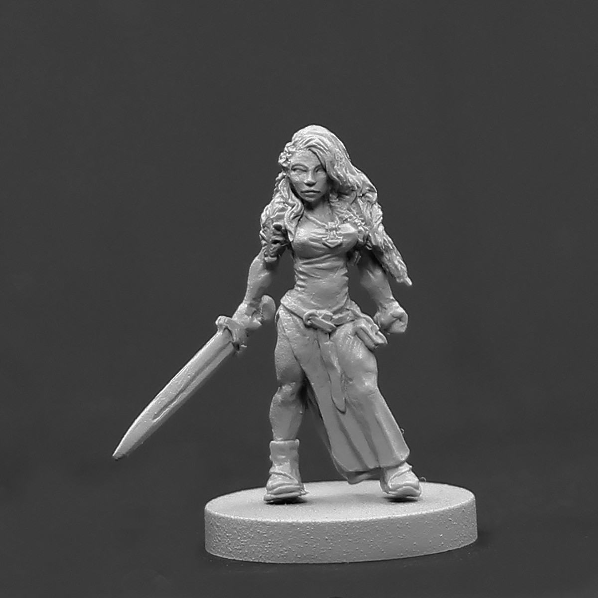 Sculpted by David Soderquist, 32mm. Cast in lead free pewter made for a slotted base, base included. Miniature unpainted and un assembled.