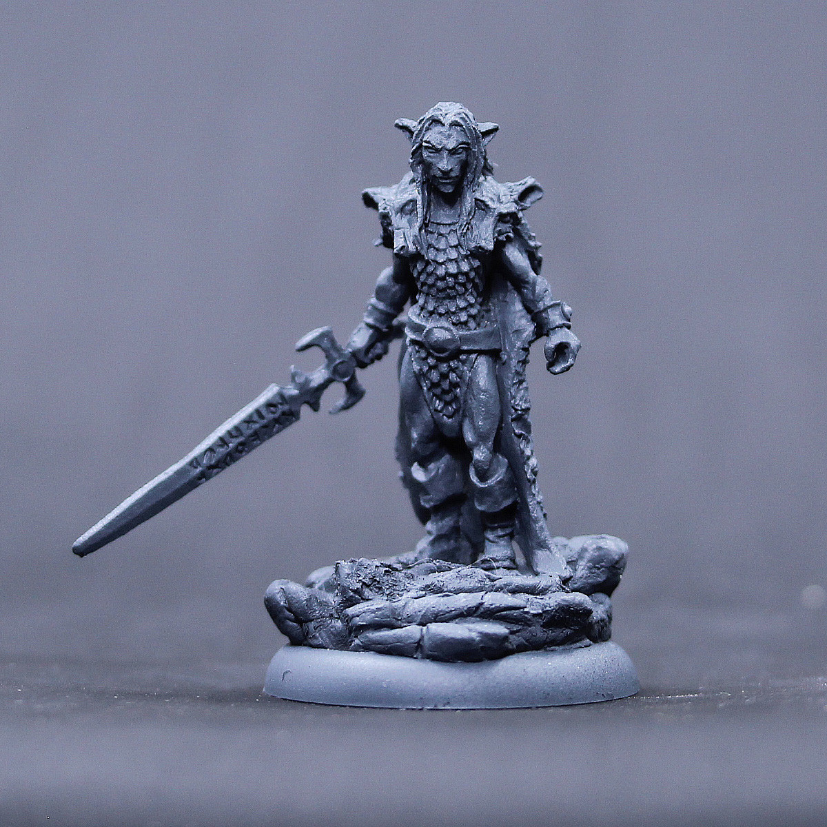32mm Male Grey Elf wolf Lord with Rune sword. cast in pewter. Base not included. Sculpt by David Soderquist. Not intended for children under 12